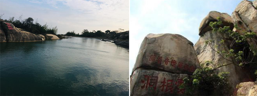 一水清流,列峰秀出,村舍錯落,古跡薈萃,延壽塔、棲山樓、谷橋、浴仙盆、云根洞等二十多景與摩崖石刻30多處,處處顯露太武山深厚的文化底蘊,登高俯瞰,宛如一幅濃墨潑灑的美麗畫(huà)卷。