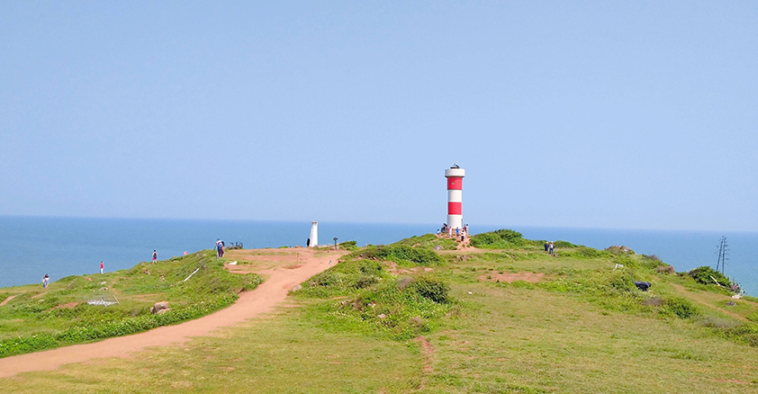 藍色的大海無(wú)限綿延與天空相連,沙白如絮,清潔柔軟,岸邊努力向上的小草和默默守護一旁的燈塔,或覺(jué)孤寂與荒涼,轉眼又感平和、自在。
